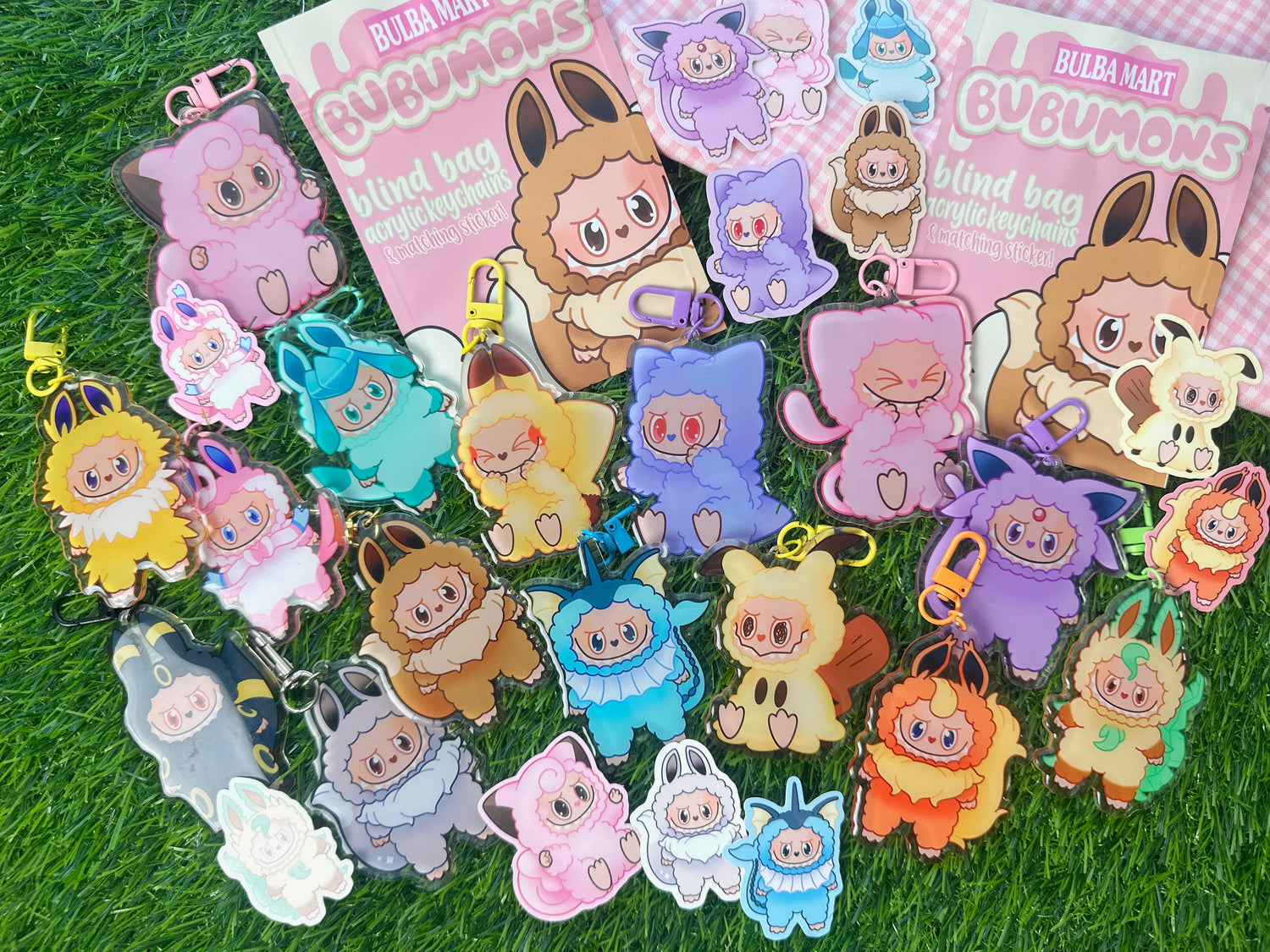 This is a Blind Bag product and you are guaranteed no duplicates! Each blind bag features a custom-printed, resealable mylar bag with all designs printed on the back. Keychains are 3 inches in height, made from acrylic, with epoxy coating on each side to ensure durability and add extra shine. Matching vinyl stickers are provided in each bag and are UV-resistant and dishwasher safe.
